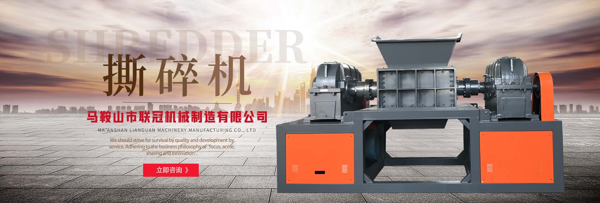 馬鞍山市聯(lián)冠機(jī)械制造有限公司致力于通過科技創(chuàng)新達(dá)到環(huán)境保護(hù),為地球“制造氧氣”的目的。長(zhǎng)期以來,我們堅(jiān)守此宗旨,汲取先進(jìn)理念,致力于設(shè)計(jì)、研發(fā)、生產(chǎn)實(shí)用,的環(huán)保、廢舊物料再生設(shè)備。馬鞍山市聯(lián)冠機(jī)械制造有限公司主要產(chǎn)品包括:生活垃圾預(yù)處理系統(tǒng)、大件垃圾回收處理系統(tǒng)、金屬?gòu)U棄物(汽車摩托車外殼、壓塊、鐵屑)處理系統(tǒng)、廚余垃圾預(yù)處理系統(tǒng)、廢舊輪胎回收處理系統(tǒng)、廢舊電子電器回收處理系統(tǒng)、廢舊塑料回收處理系統(tǒng)等。馬鞍山市聯(lián)冠機(jī)械制造有限公司在確保產(chǎn)品品質(zhì)和完善的海外服務(wù)基礎(chǔ)上,公司經(jīng)過長(zhǎng)期戰(zhàn)略布局,并且積極進(jìn)軍國(guó)外市場(chǎng)。面對(duì)經(jīng)濟(jì)快速發(fā)展提供的機(jī)遇,聯(lián)冠機(jī)械始終依靠提供更好的產(chǎn)品和完善的服務(wù)來追求客戶滿意,從而實(shí)現(xiàn)企業(yè)的價(jià)值!另一方面,我們堅(jiān)信科技推動(dòng)了人的觀念和機(jī)械的效率共同進(jìn)步。規(guī)避行業(yè)發(fā)展的劣勢(shì)、探求機(jī)械制造與人類文明結(jié)合是我們永遠(yuǎn)的動(dòng)力。馬鞍山市聯(lián)冠機(jī)械制造有限公司以質(zhì)量求生存、以服務(wù)求發(fā)...